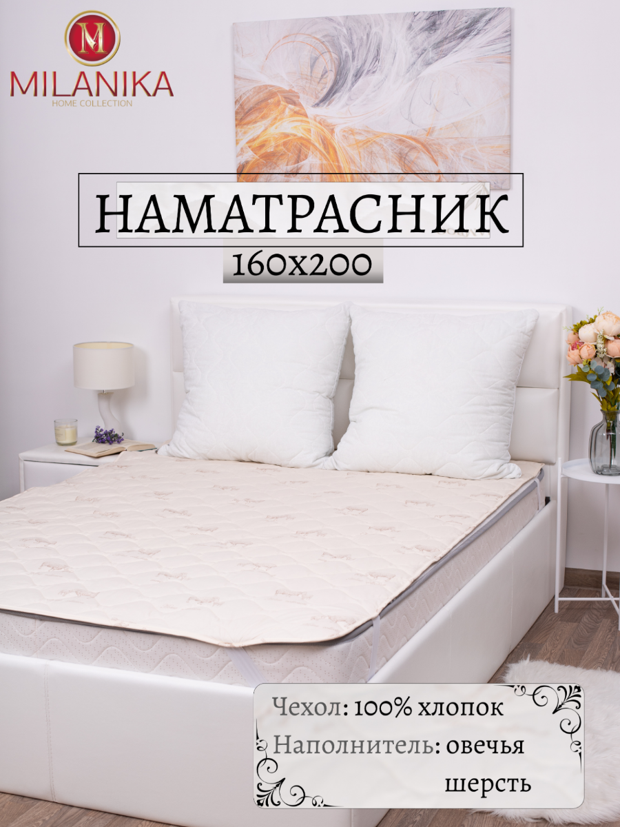 Отзывы на Наматрасник Миланика, овечья шерсть, стеганый, с резинкой по углам 160х200 см