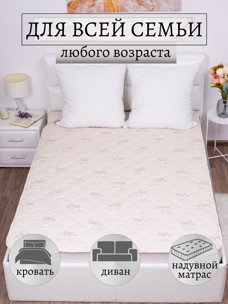Наматрасник Миланика, овечья шерсть, стеганый, с резинкой по углам 160х200 см информация: