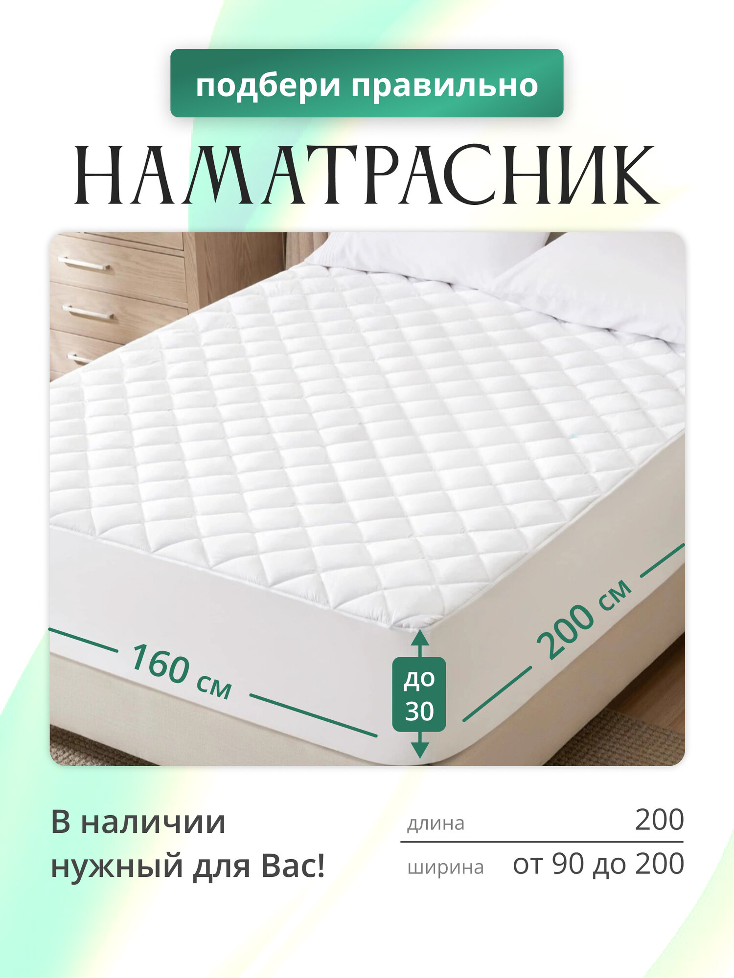 Наматрасник KAMTEX, водоотталкивающий, 160x200х0,5 см, белый информация: