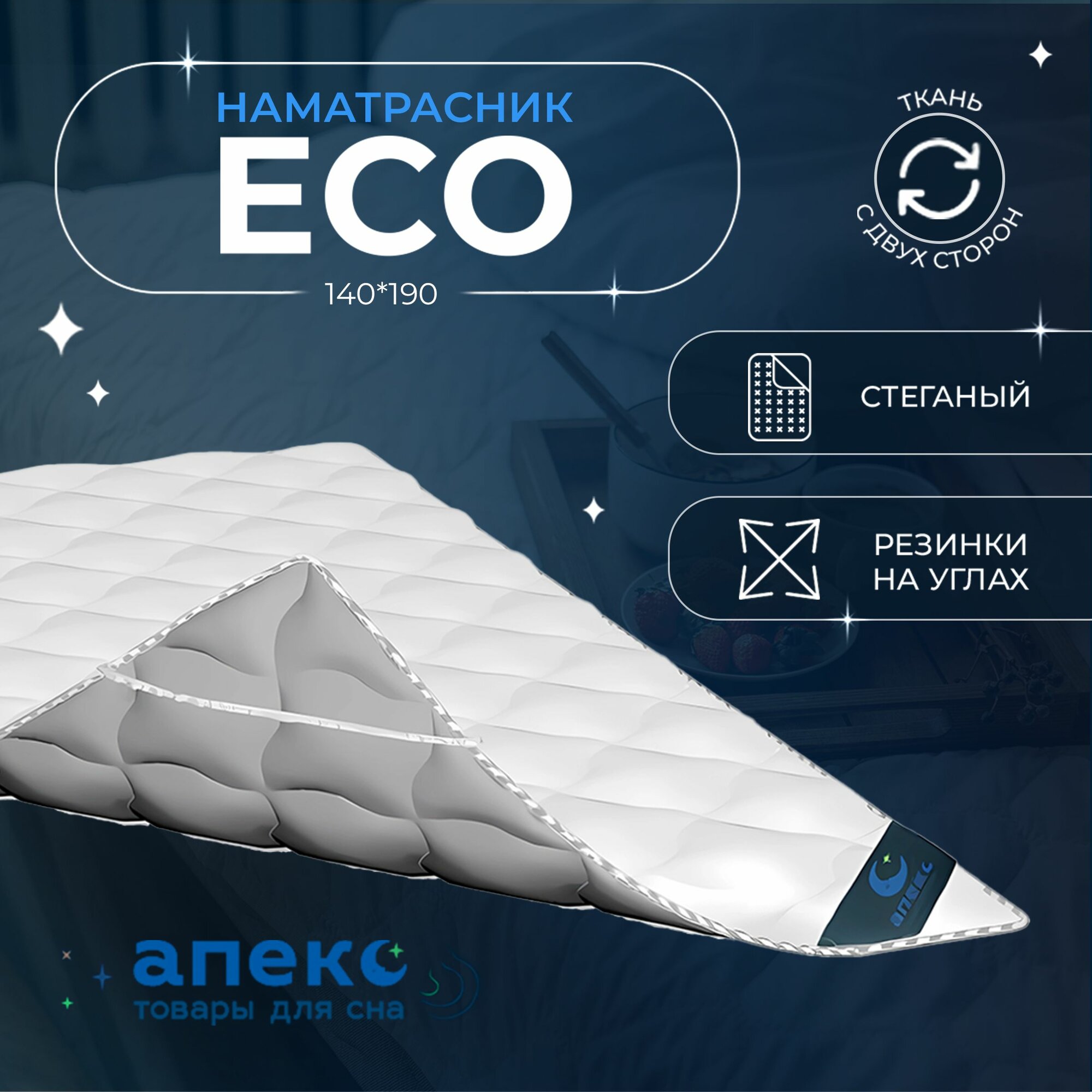 Наматрасник 140*190 ECO апекс, с резинкой по углам, чехол для матраса, из сатина, защитный, для матраса информация: