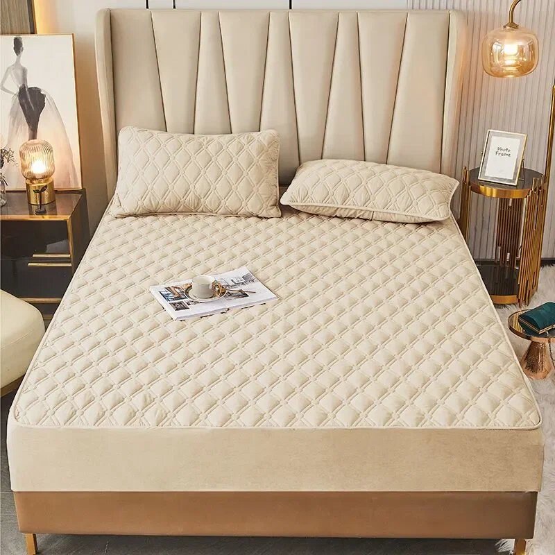 Наматрасник стёганый с резинкой по кругу, с бортами, Хлопок 160х200 см, Бежевый информация: