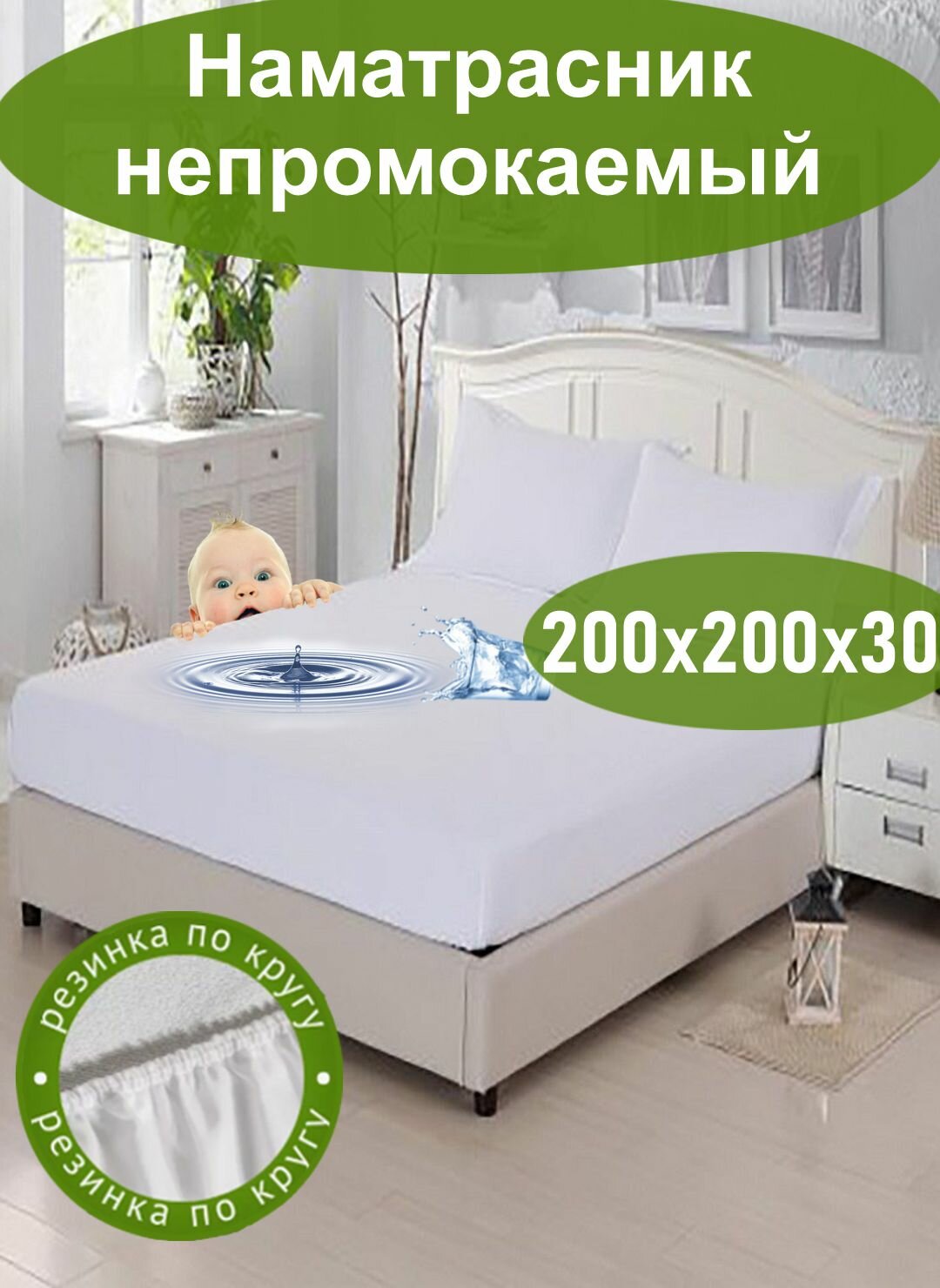 "Непромокаемый наматрасник" от бренда "ООО Яфетекс" размер 200х200х30 информация: