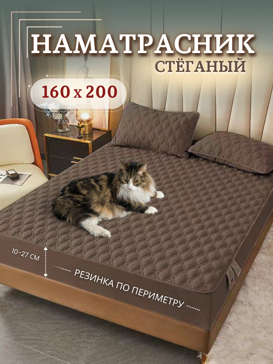 Отзывы на Наматрасник 160х200 стеганый с бортом, защитный чехол на матрас 160x200, коричневый