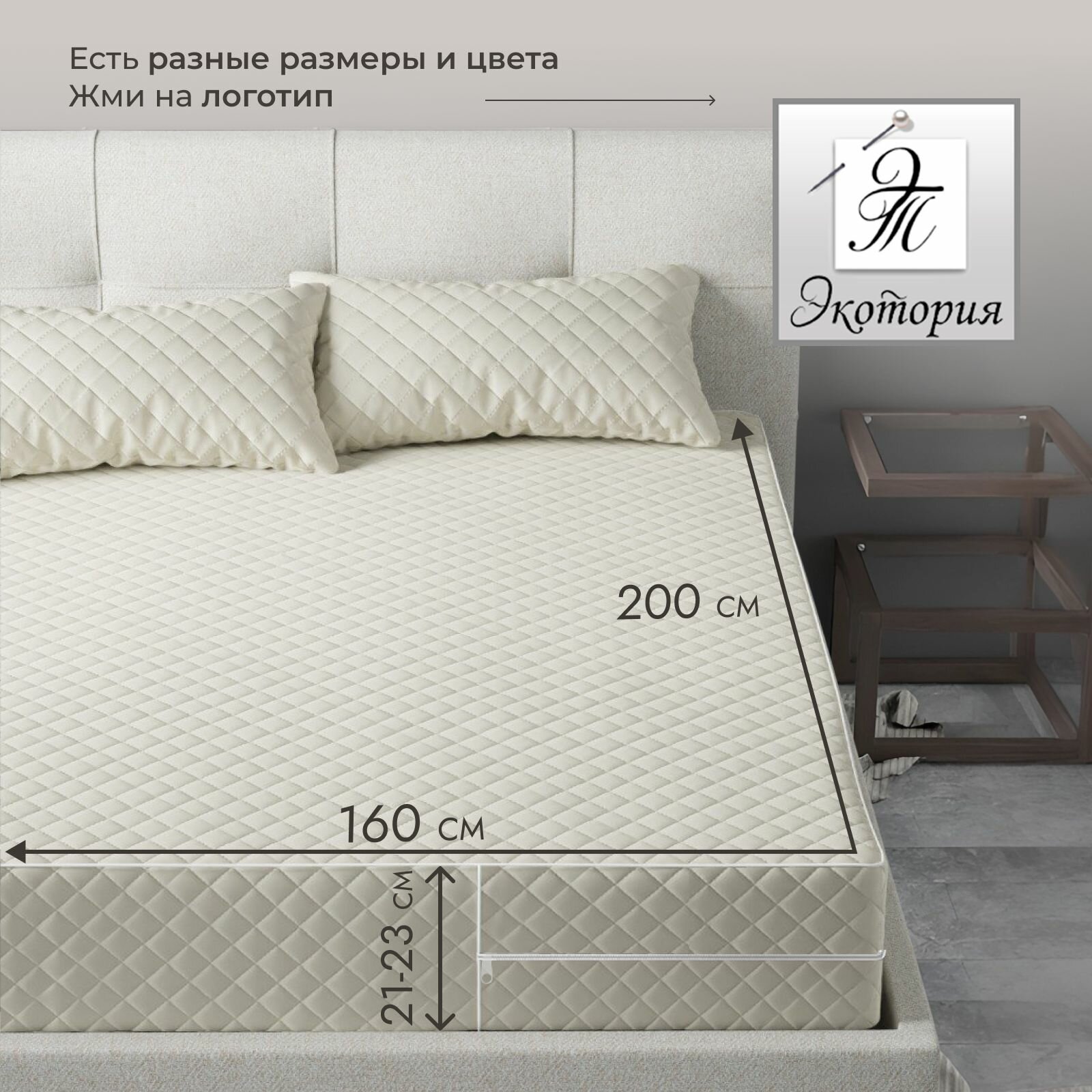 Наматрасник 160х200 стеганый на молнии, защитный, с высокими бортиками 21-23 см, для двуспальной кровати, бежевый информация: