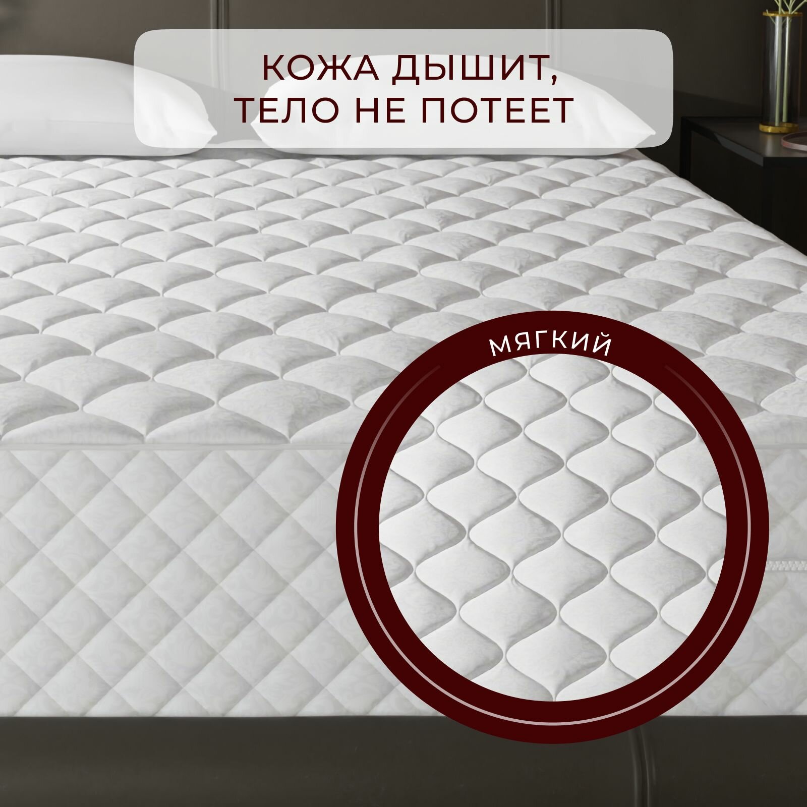 Наматрасник стеганый с резинками SofAr White Morozko 120x190 см. / Защитный чехол на матрас 120х190 см. SofAr / Топпер SofAr для матраса 120*190 см.