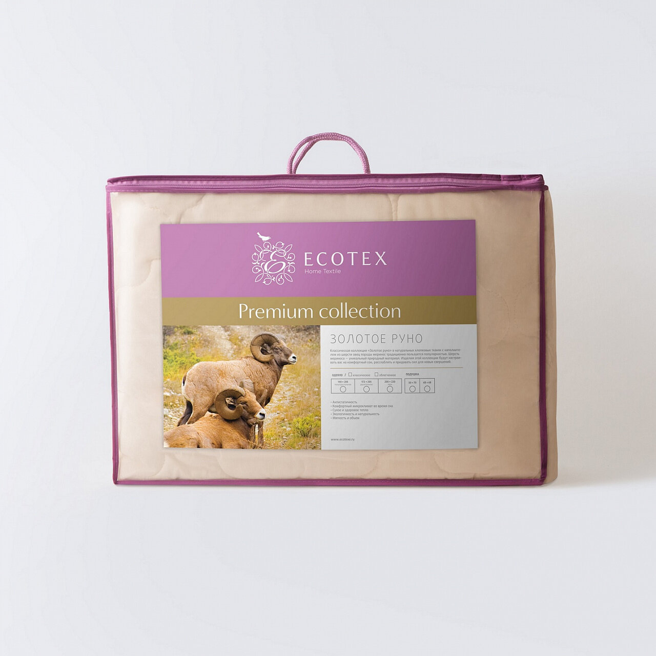 Наматрасник овечья шерсть 180x200 см "Золотое руно", чехол - поликоттон (80% хлопок, 20% п/э), Ecotex информация: