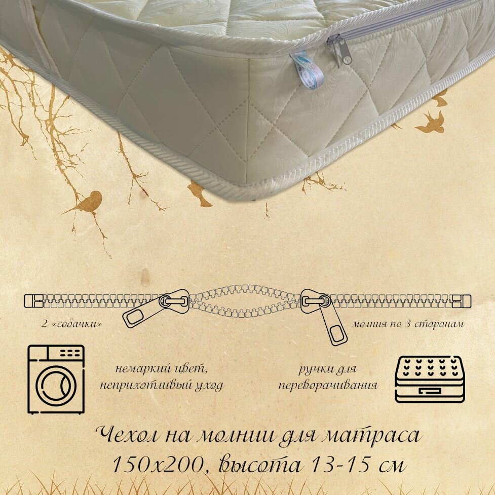 Чехол на молнии для матраса 150х200х13(14,15) синтетический съёмный Ефросиния информация: