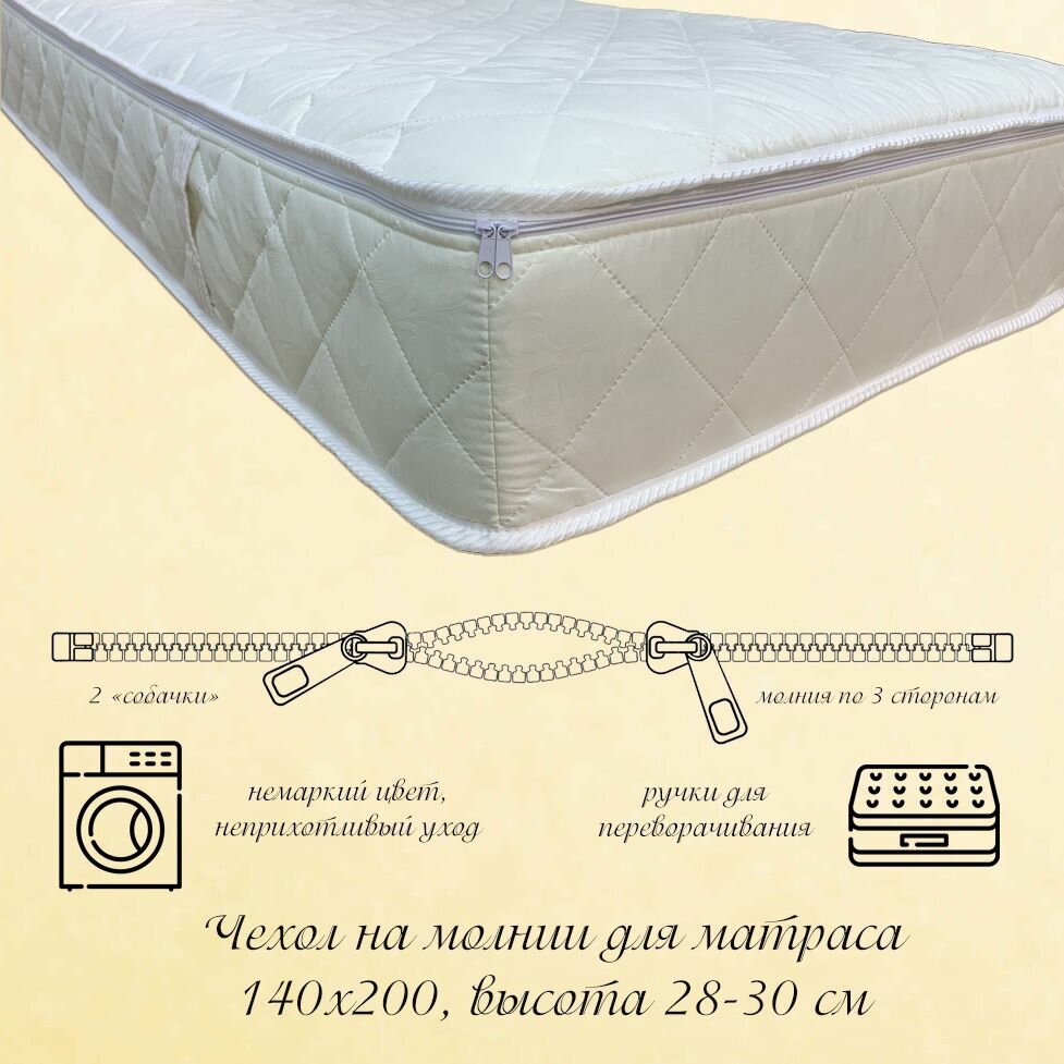 Чехол на молнии для матраса 140х200х28(29,30) синтетический съёмный Ефросиния информация:
