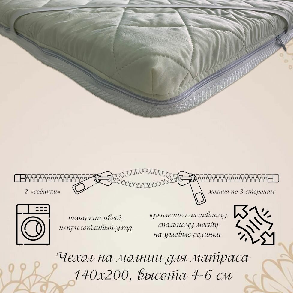 Чехол на молнии для матраса 140х200х4(5,6) синтетический съёмный Ефросиния информация: