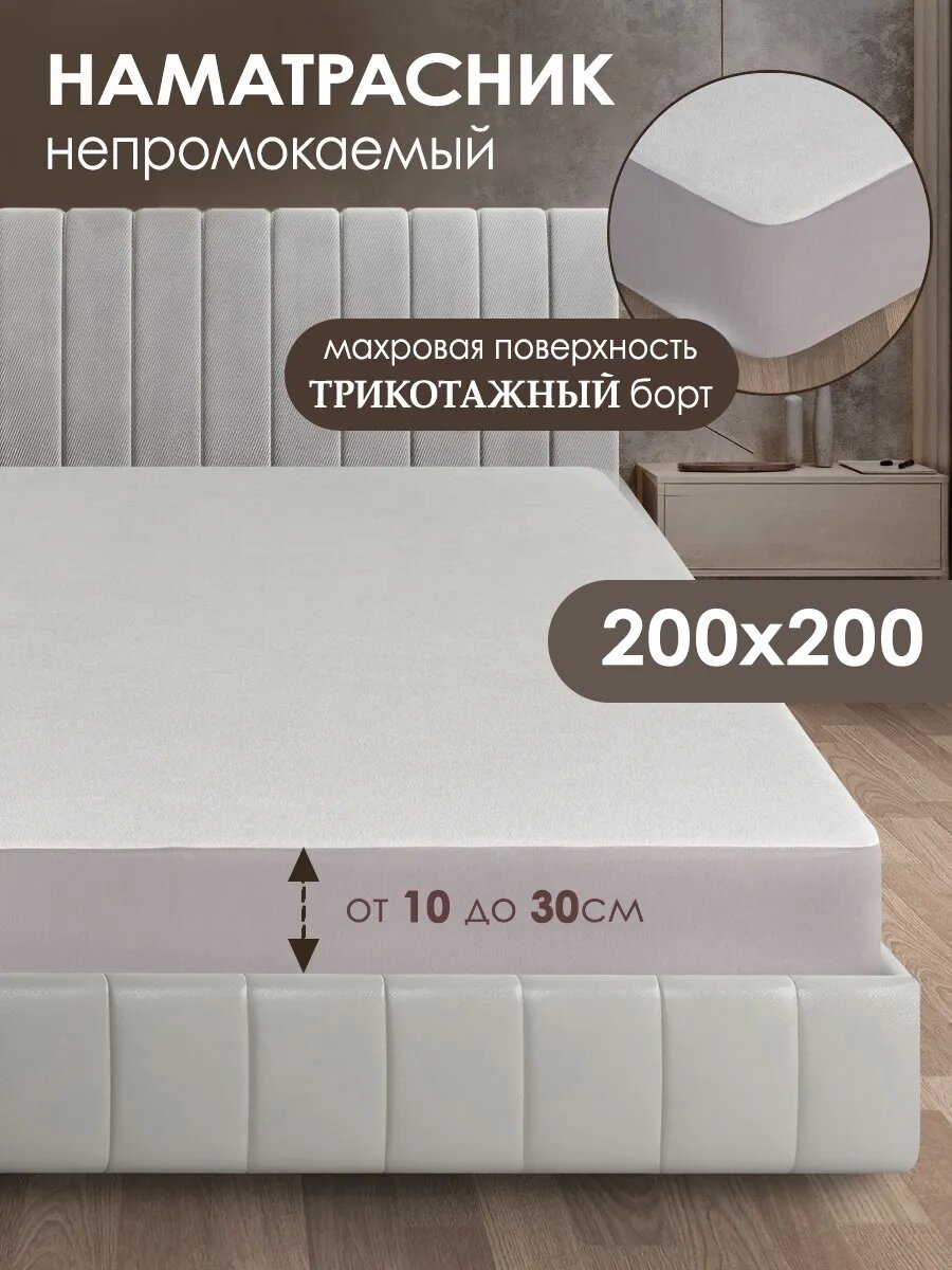 Наматрасник "КПБ уют" 200х200, светло-серый, водонепроницаемый, с резинкой по периметру информация:
