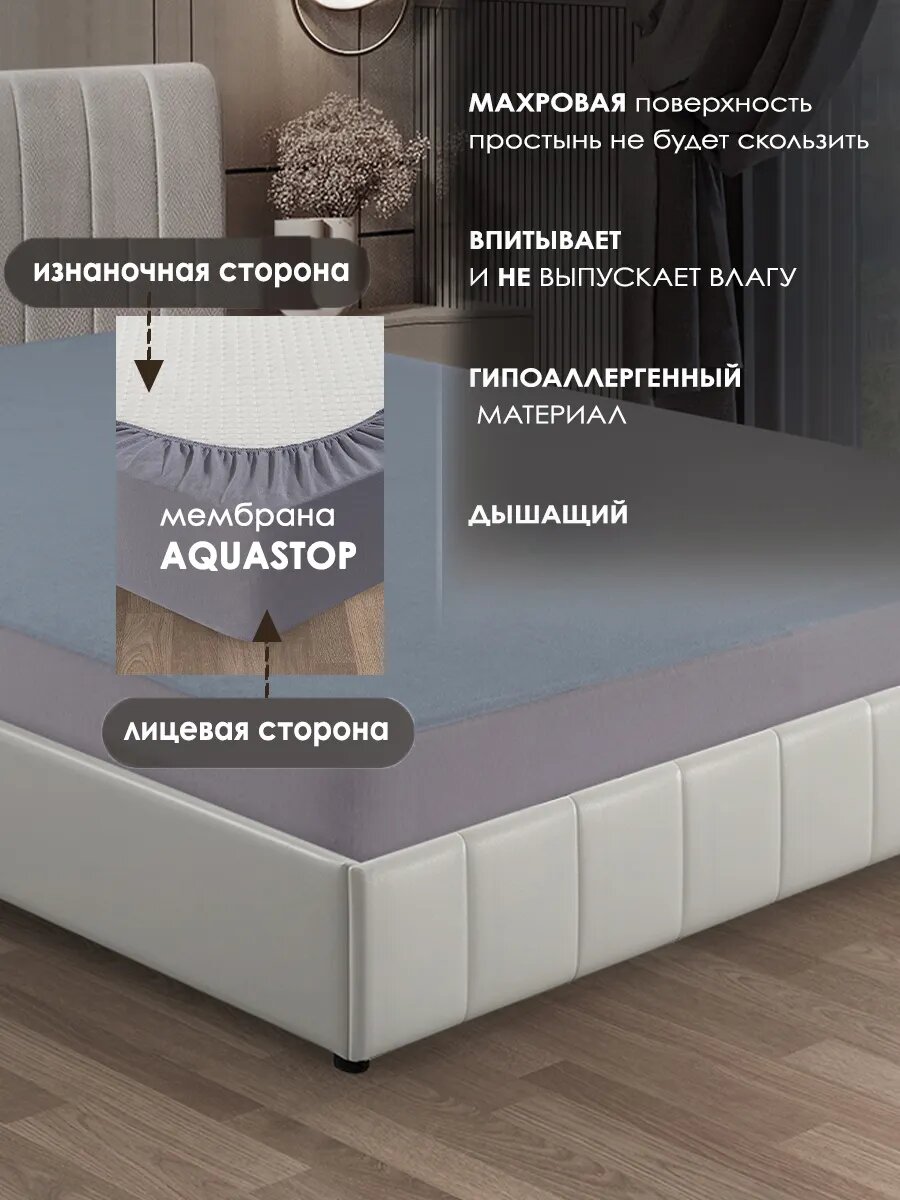 Наматрасник "КПБ уют" 180х200, светло-серый, водонепроницаемый, с резинкой по периметру 1 620 ₽
