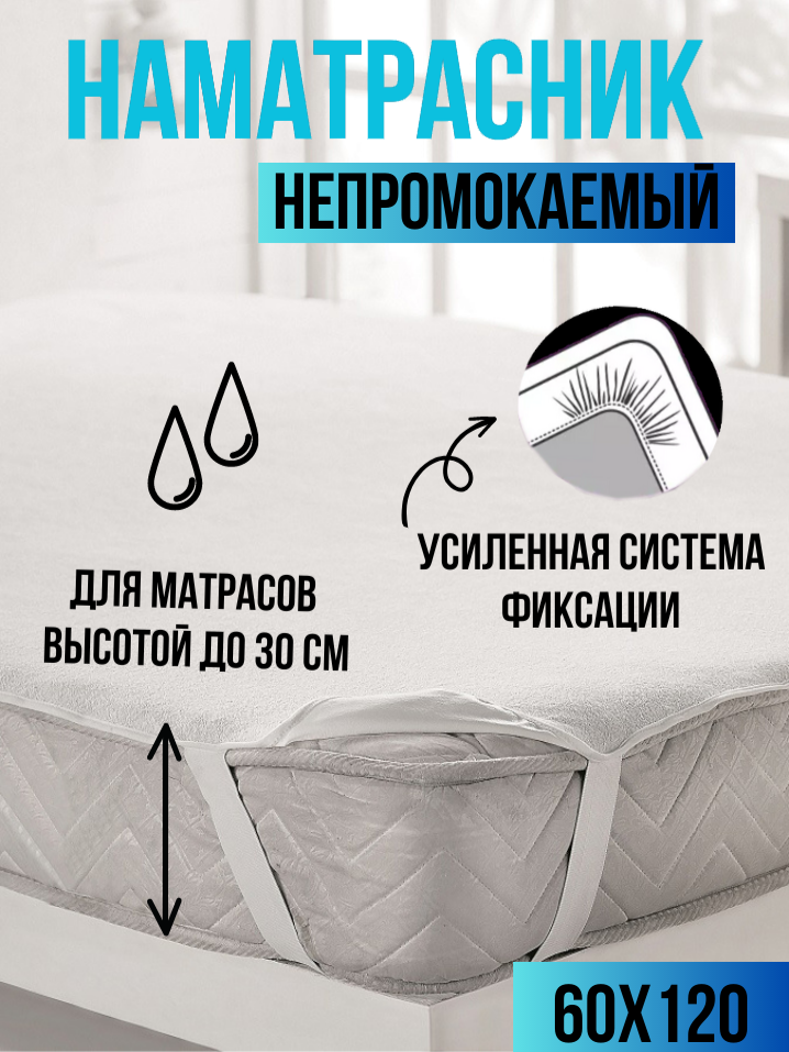 Наматрасник 60х120 водонепроницаемый на резинках, белый Linen Way информация: