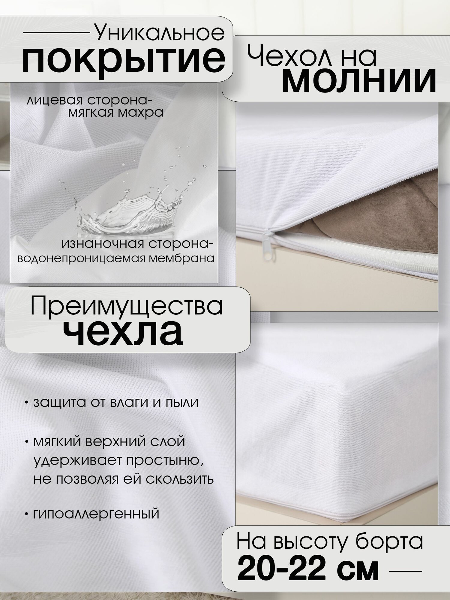 Наматрасник непромокаемый 80x200x5см, на молнии (высота 5см)