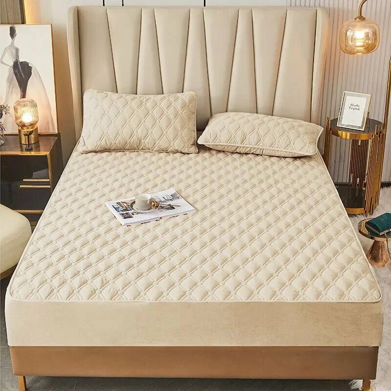 Наматрасник Amber Ariel стёганый с резинкой по кругу, с бортами, Хлопок, 180х200см, Бежевый информация: