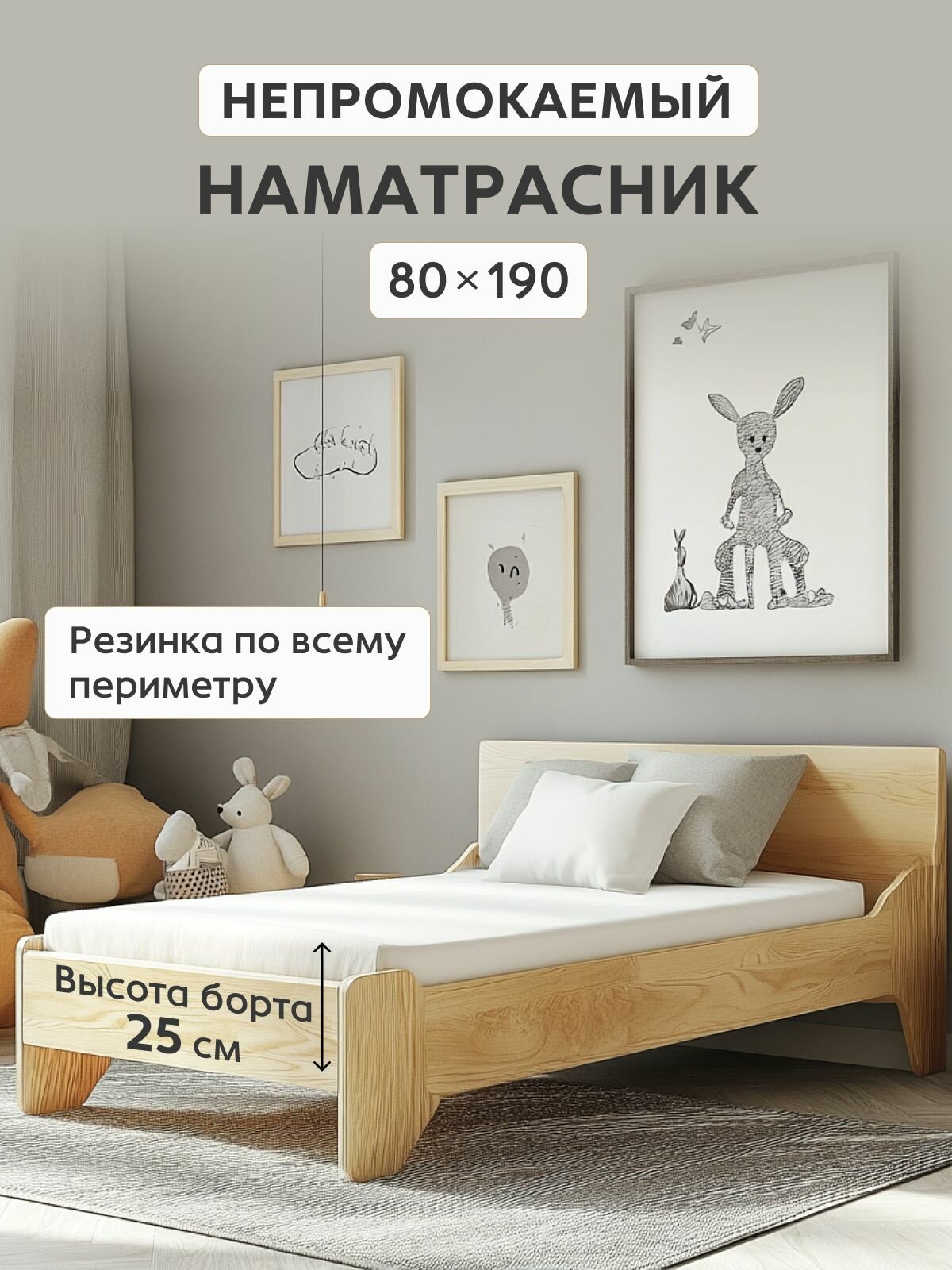 Наматрасник Аквастоп, непромокаемый с бортами, на резинке, 80 x 190 x 25 см информация: