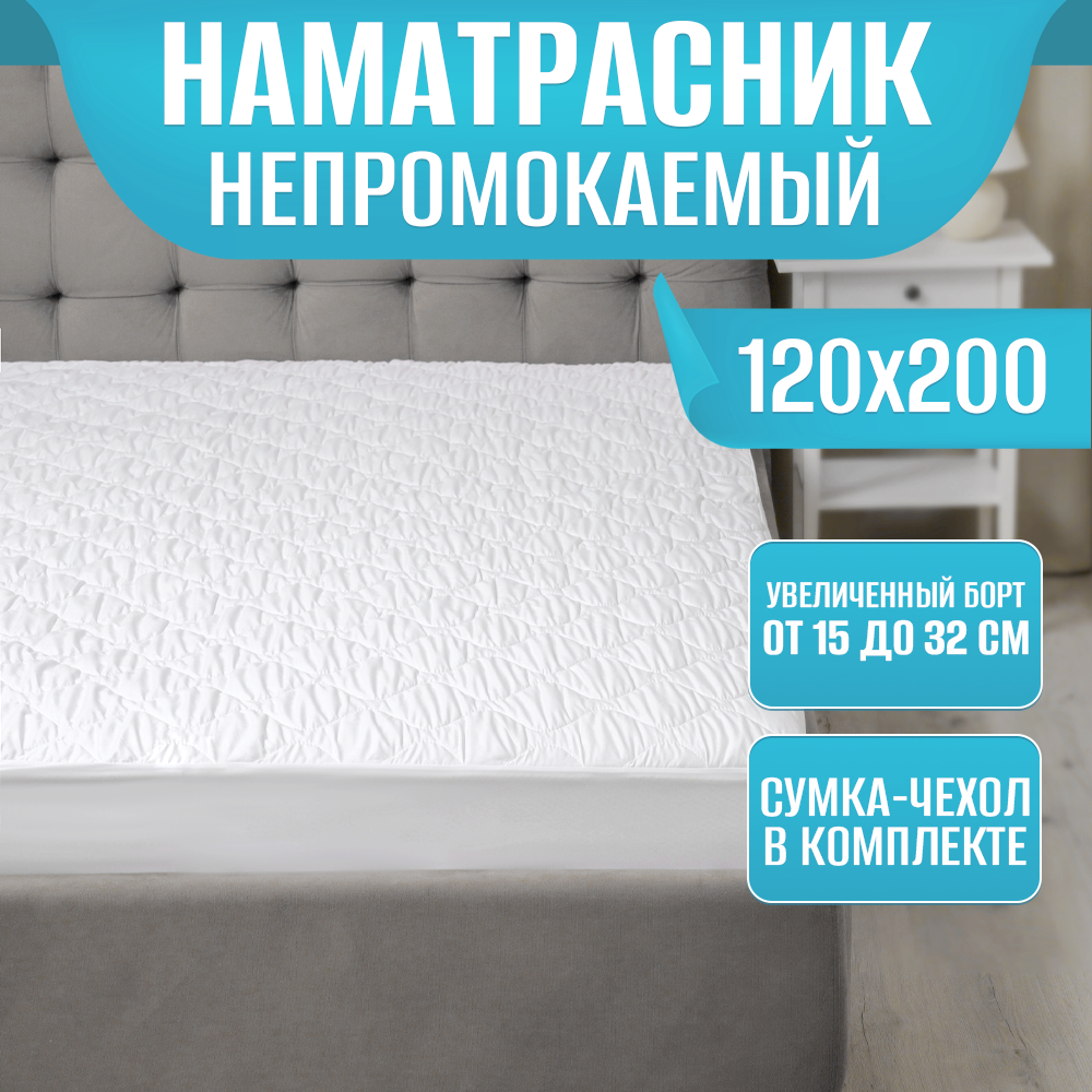 10 цен на Наматрасник непромокаемый 120х200 стеганый на резинке с бортом, на высокий матрас до 32 см, PORELIKA