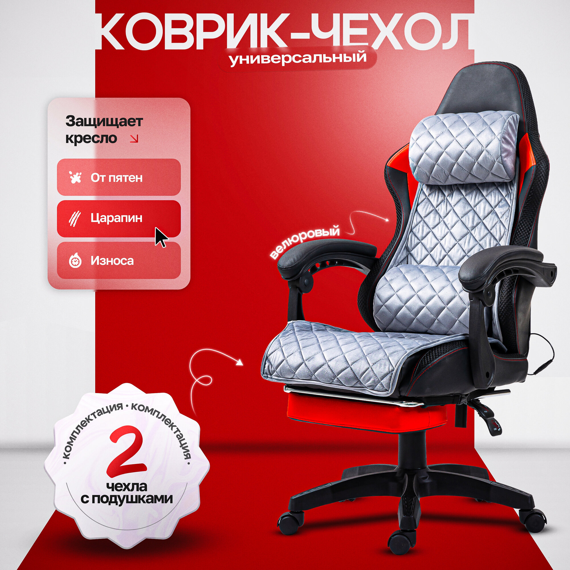Чехол на игровое кресло UNITED GAMER с двумя подушками, светло-серый велюр информация: