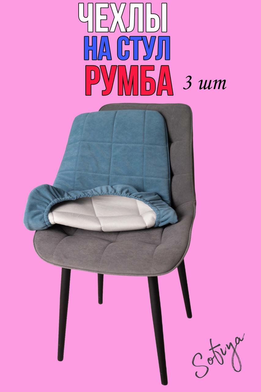 10 цен на Чехол на стул со спинкой Бостон Румба 3 шт. размер 50х80 цвет голубой