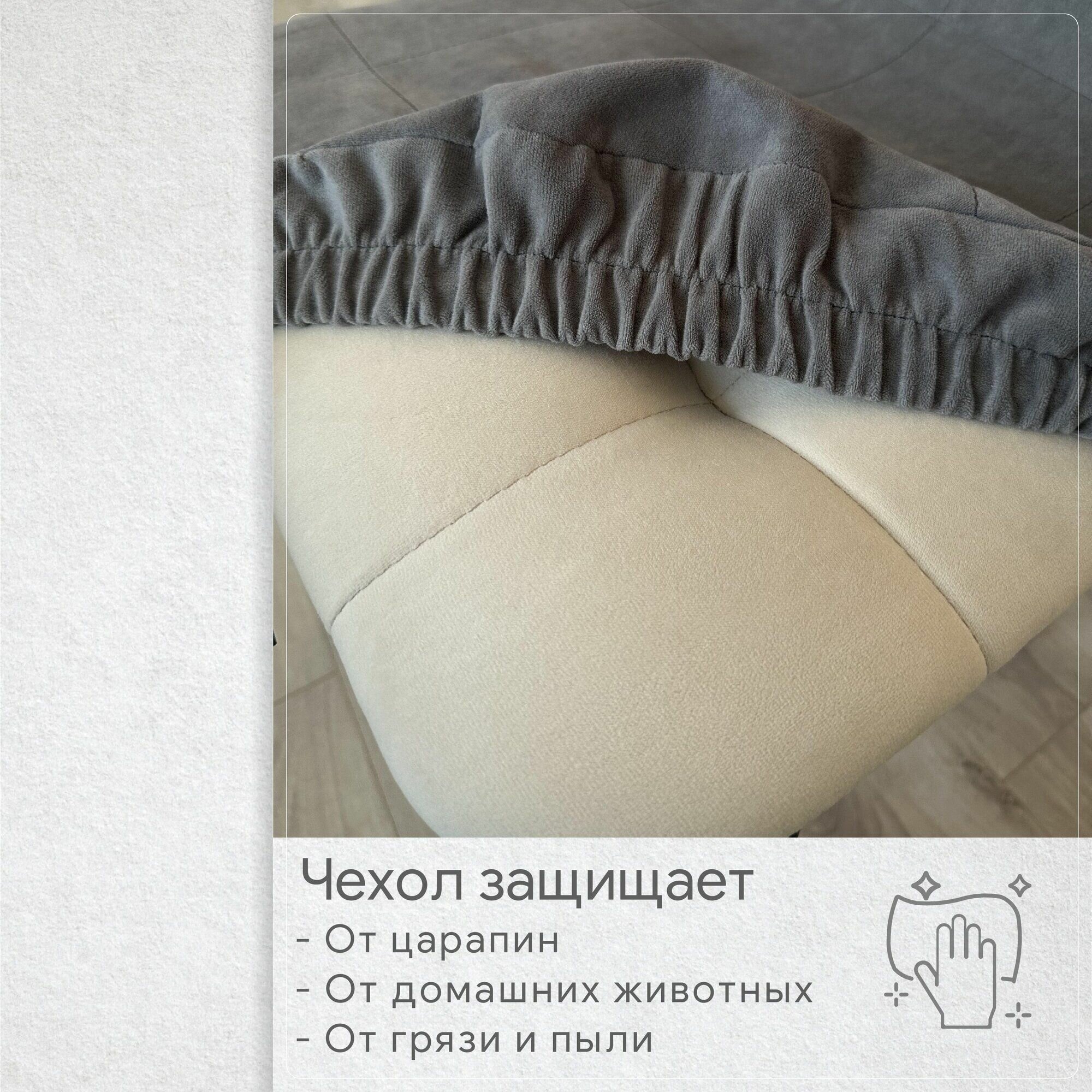 Чехол на стул со спинкой Бетта из велюра, серый информация: