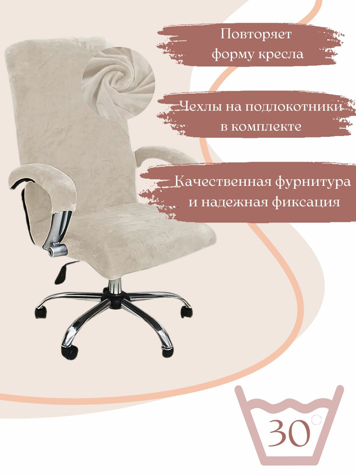 Чехол на компьютерное кресло с подлокотниками, однотонный велюр, цвет белый информация: