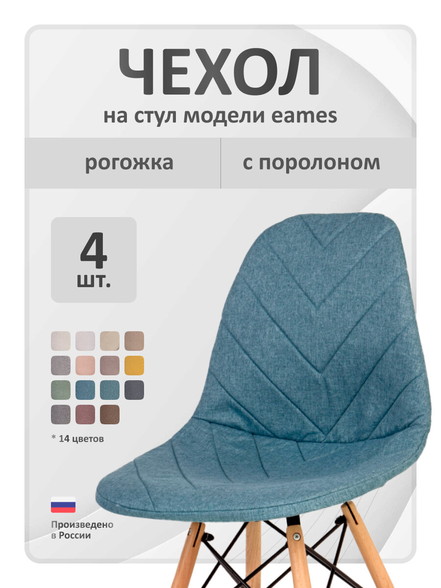 Отзывы на Чехол на стул со спинкой LuxAlto на модели Eames, Aspen, Giardino, 40х46 см, ткань Laguna рогожка, Джинсовый, 4 шт.