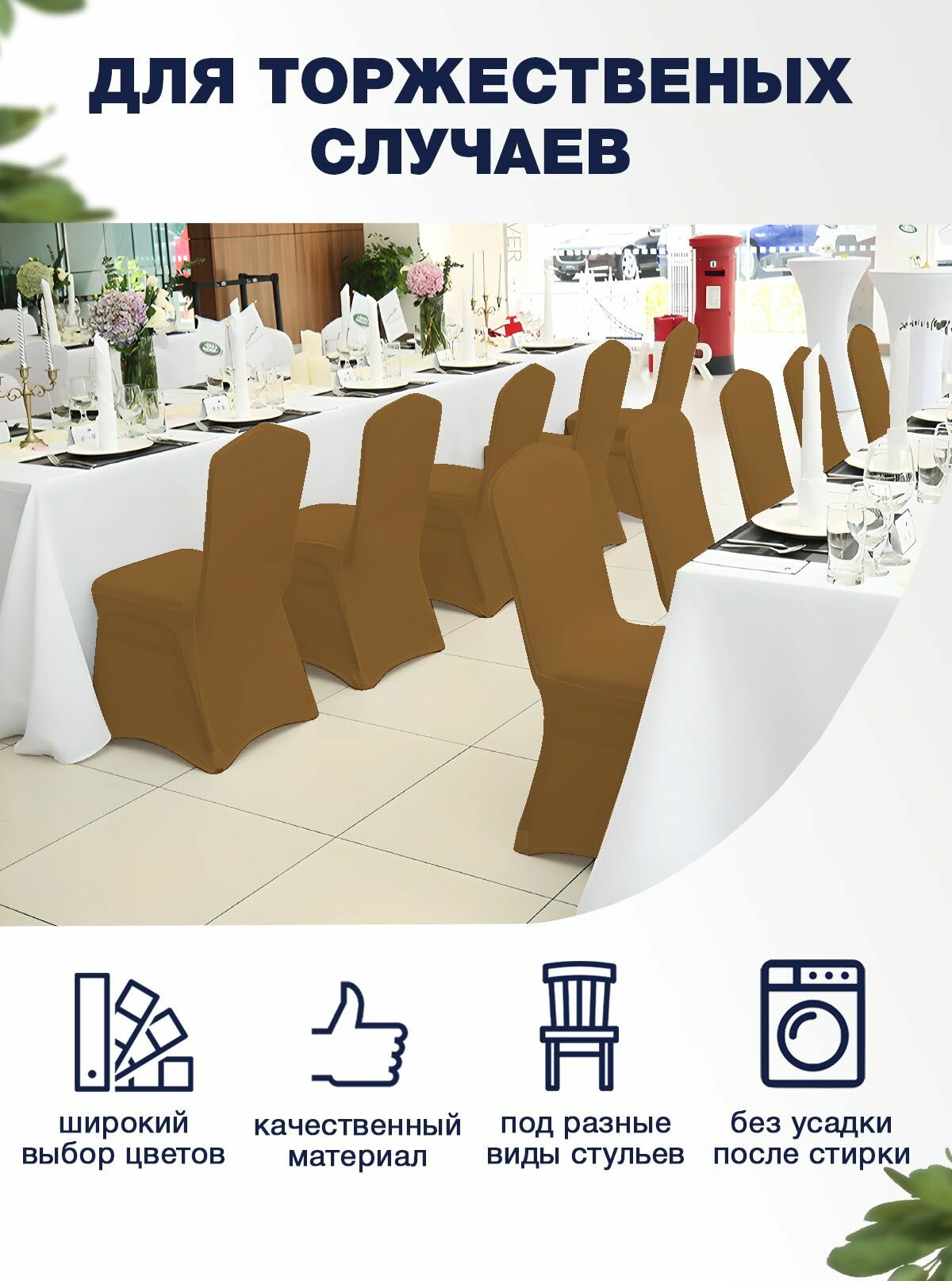 Отзывы на Чехол на стул LuxAlto с креплением за ножки, банкетный чехол, Коричневый, 1 штука