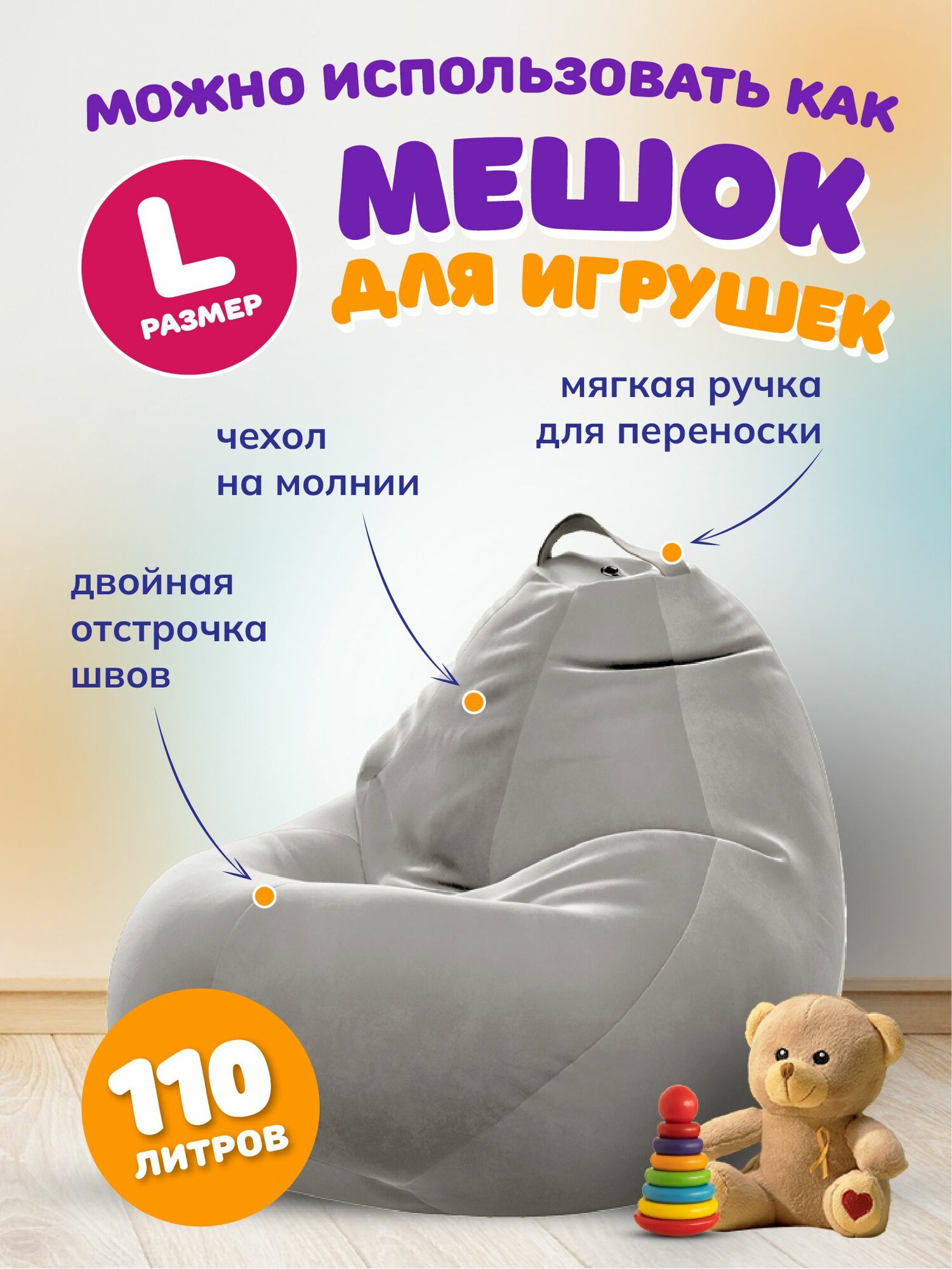 Чехол для детского кресла-мешка L велюр CAMARO информация: