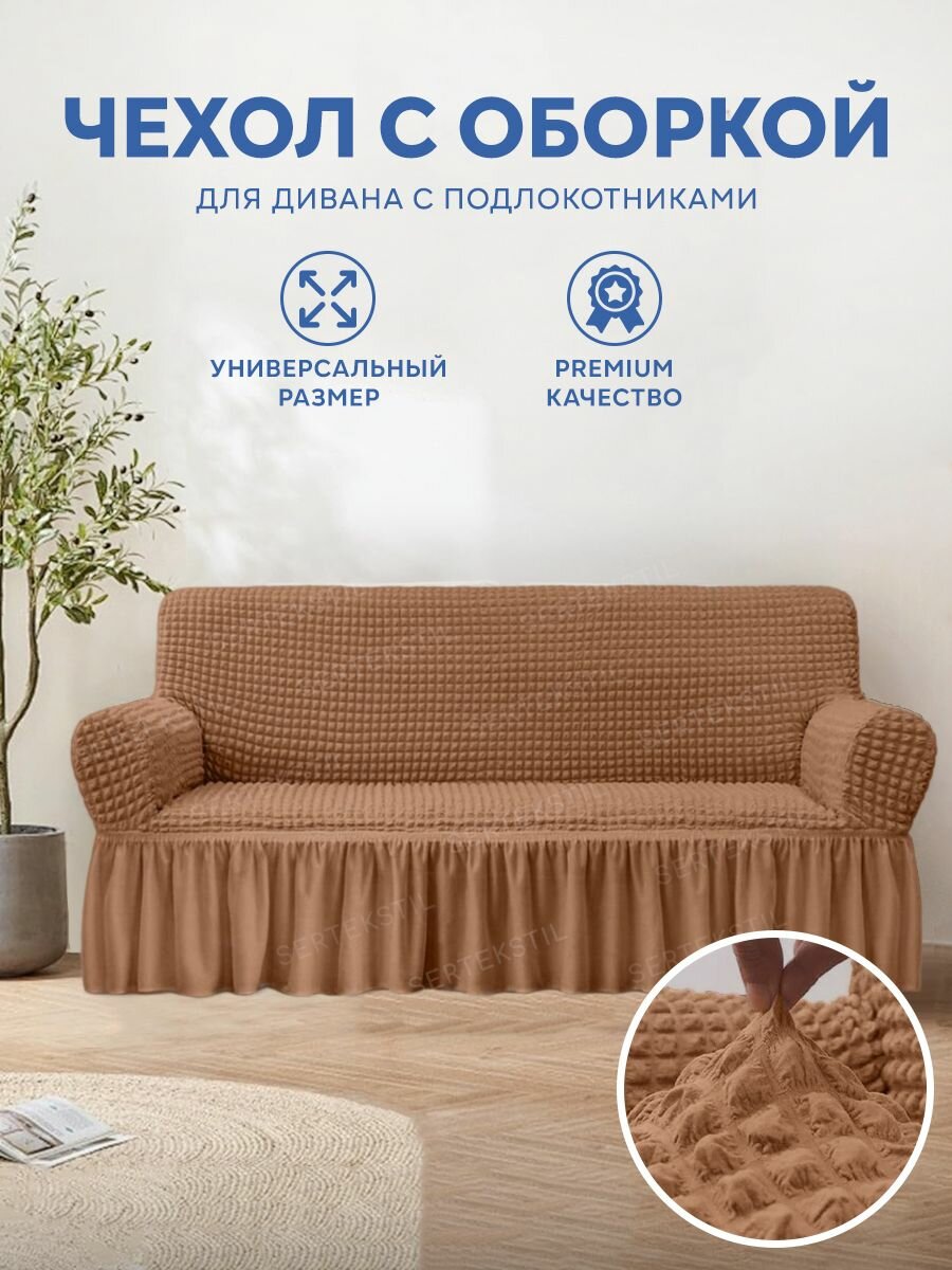 Чехол на диван трехместный с оборкой, чехол на 3 местный диван на резинке, универсальный, с подлокотниками 2 590 ₽