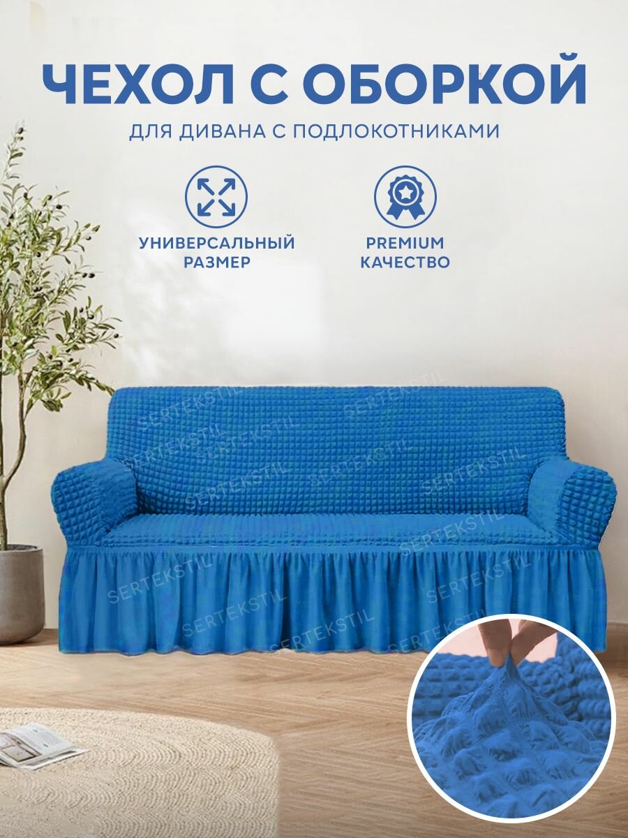 Чехол на диван трехместный с оборкой, чехол на 3 местный диван на резинке, универсальный, с подлокотниками. информация: