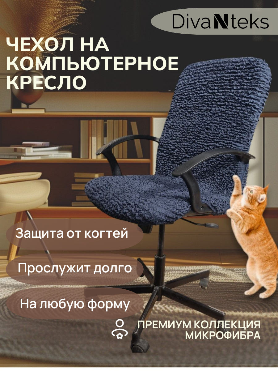 Чехол на компьютерное кресло "Графит". С эффектом "АнтиКошка"-защита от когтей. Антивандальный.