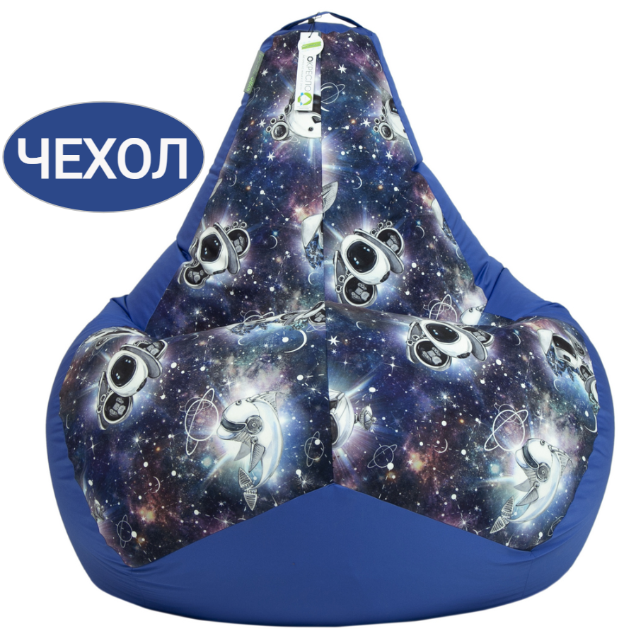 Внешний чехол для кресла мешка груша Космопузики синий 120х80, размер XXL, Чудо Кресло, чехол для хранения игрушек информация: