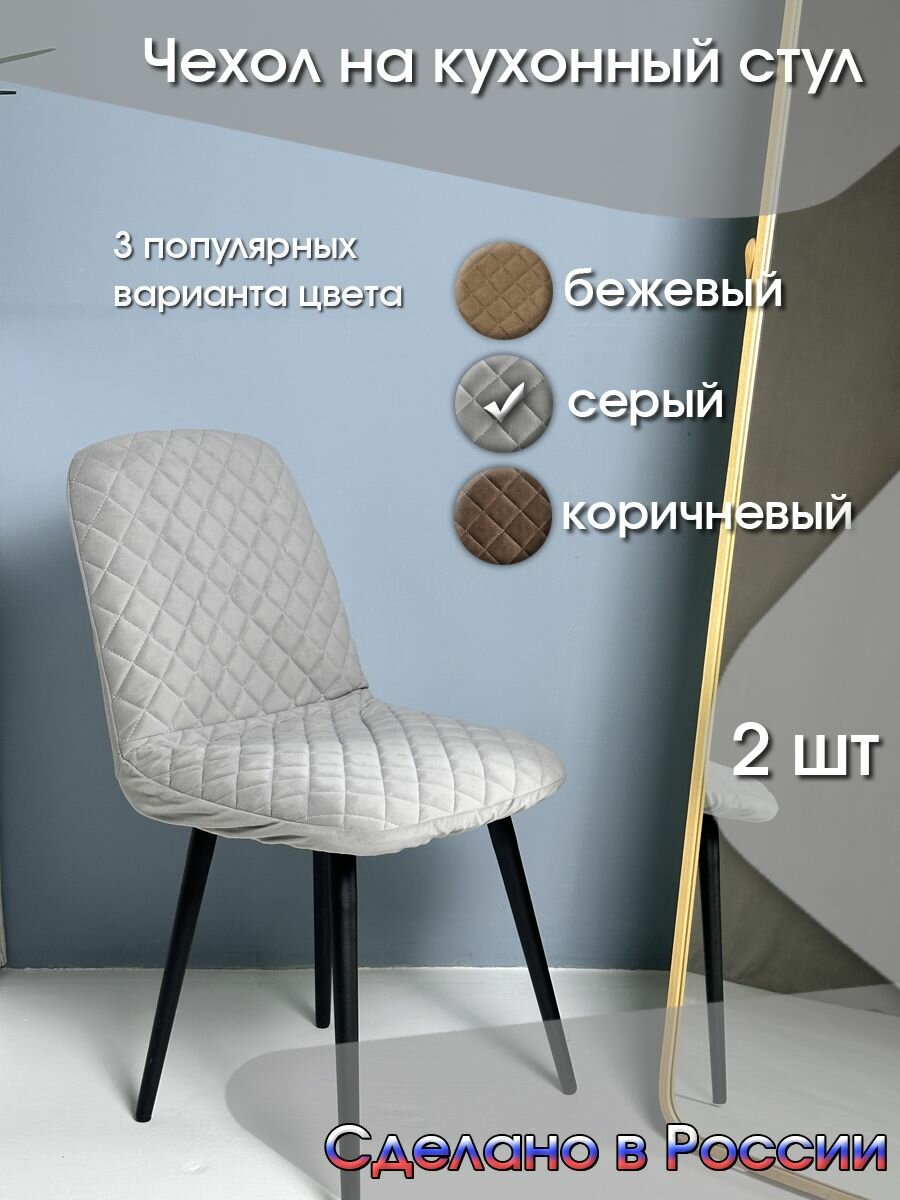Чехол на стул со спинкой Betta из велюра 2 шт, 41х46 см, серый информация: