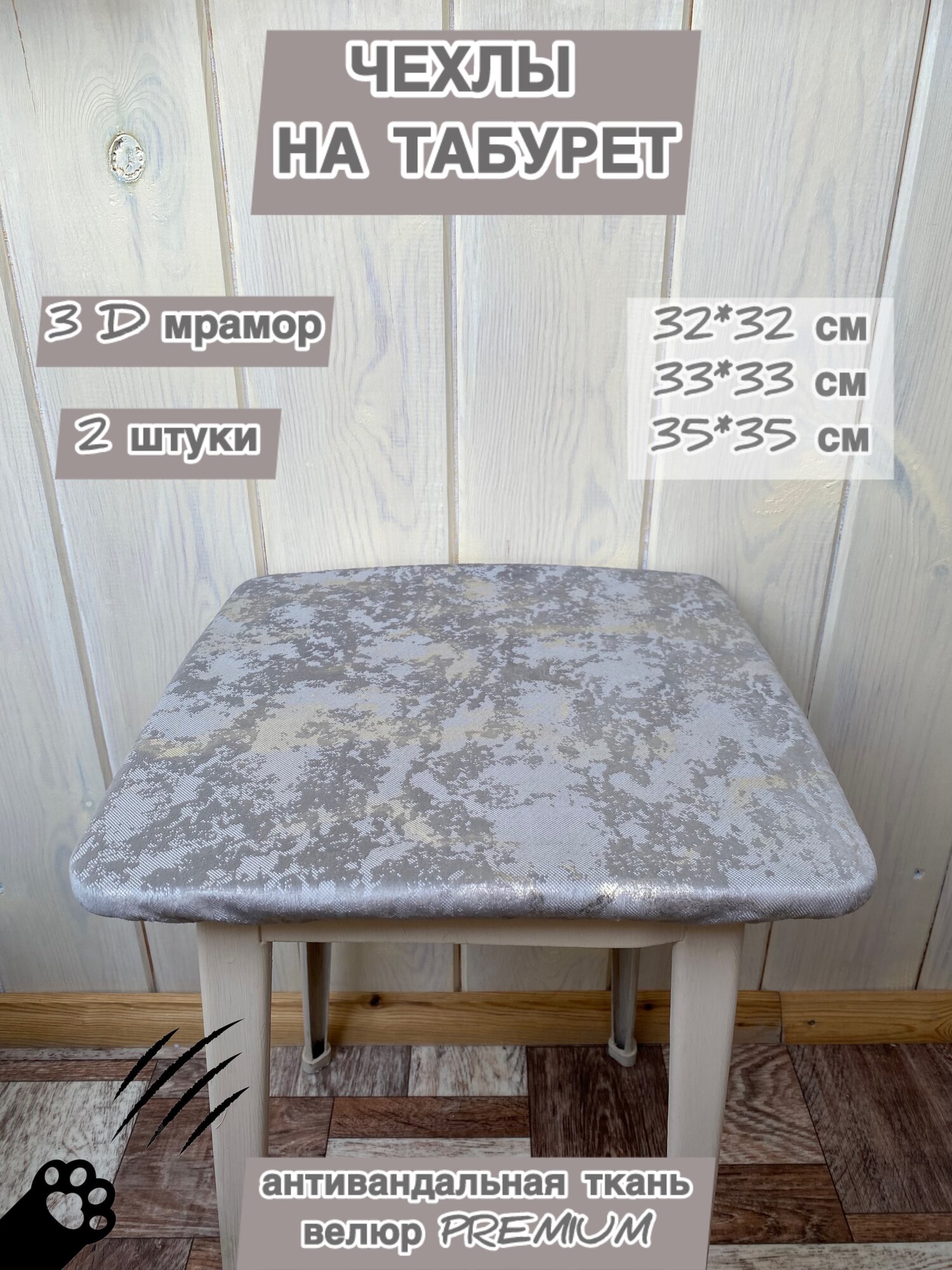 Чехол на табурет квадратный 35х35 см, светло-серый бархат, 2 штуки информация: