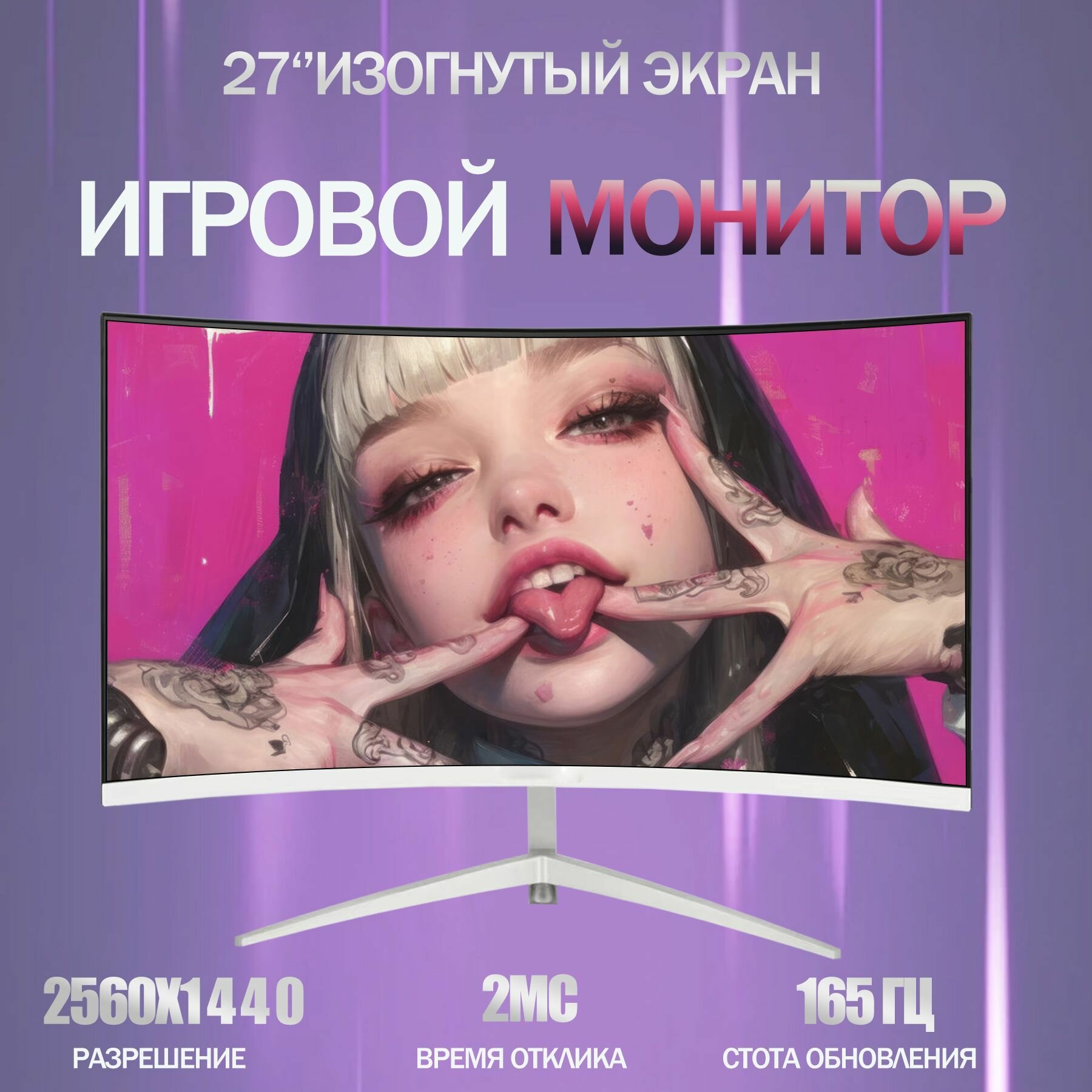 Отзывы на 27" Монитор, разрешение 2560*1440, частота обновления 165Гц, изогнутые экраны, Монитор с защитой для глаз, Белый