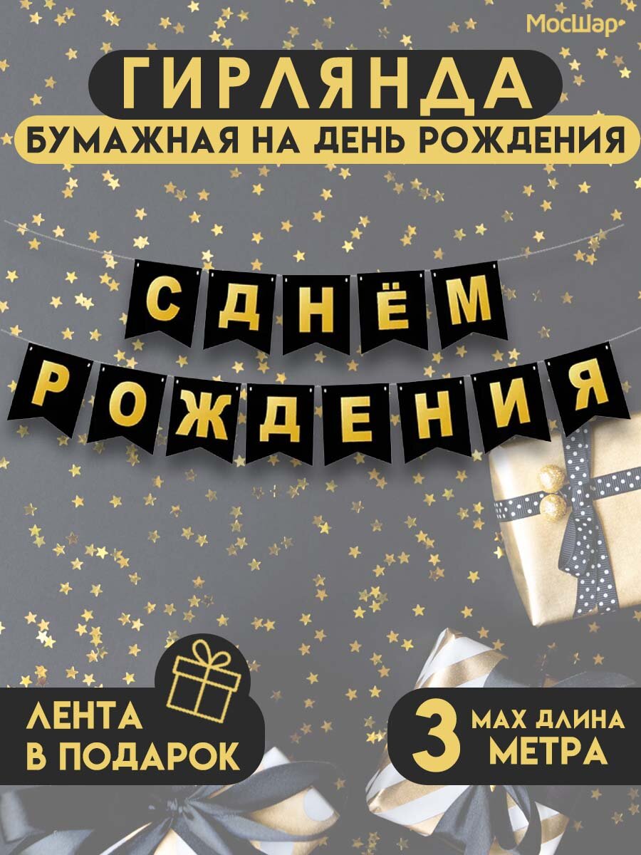 Отзывы на Гирлянда-растяжка бумажная "С днем рождения" черная, до 3 метров