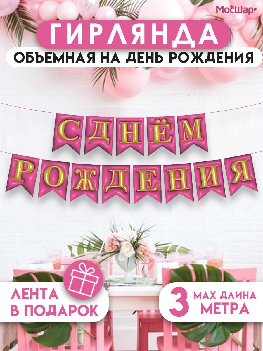Гирлянда , МосШар "С Днем Рождения", розовая, 200х4х10 см 264 ₽
