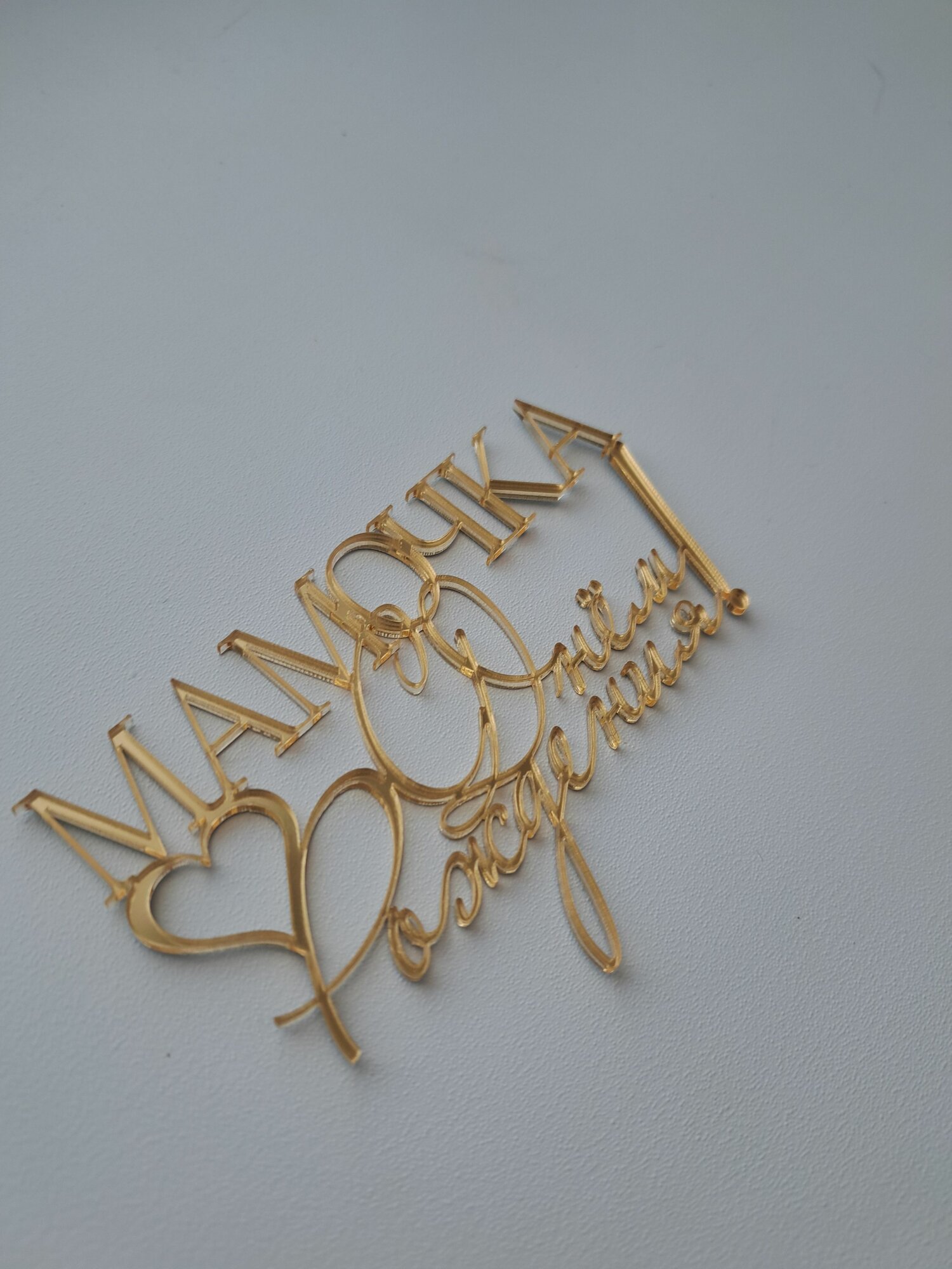 Отзывы на Топпер на торт "Мамочка с днём рождения", зеркальный золотой акрил