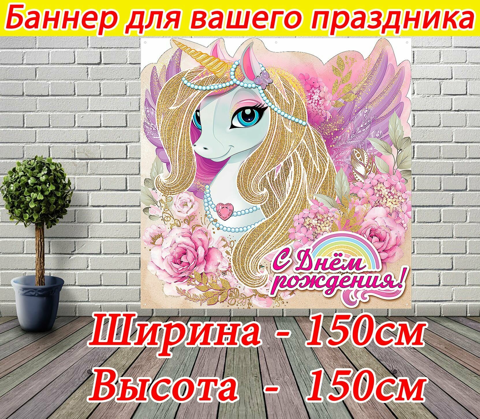 Баннер праздничный, фотозона Единорог на День Рождения 150 x 150 см информация: