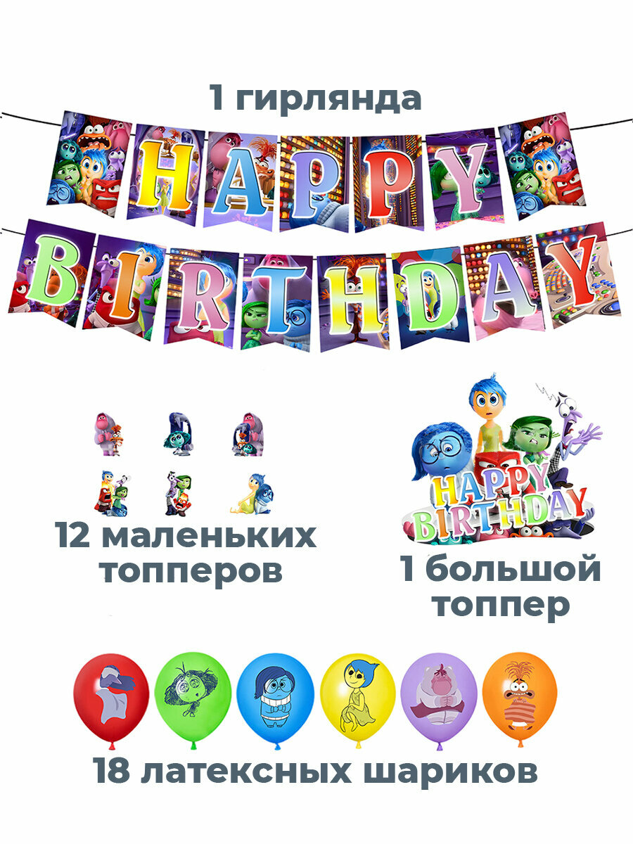 Декор набор С днем рождения Головоломка 2 Inside Out 2 гирлянда топперы шары ленты информация: