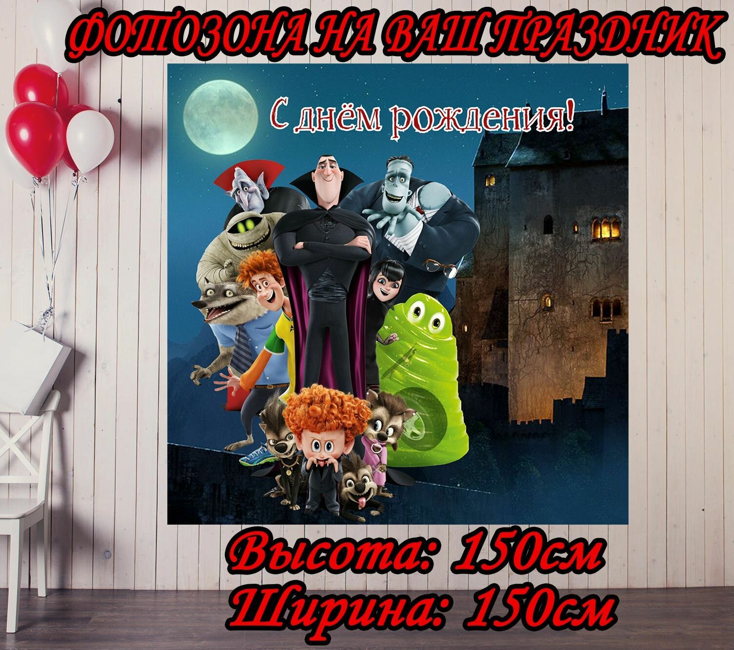Баннер праздничный Монстры на каникулах 150х150см для детского дня рождения, фотозона информация: