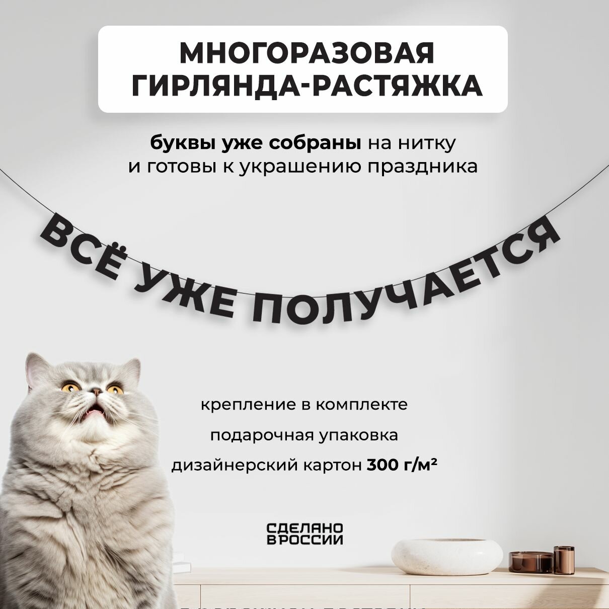 Гирлянда-растяжка бумажная ВСЁ УЖЕ получается (220 см) - уютный декор и стильный подарок себе или близкому человеку информация: