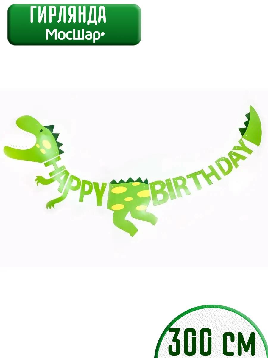 Гирлянда бумажная растяжка на день рождения Happy Birthday, динозавр информация: