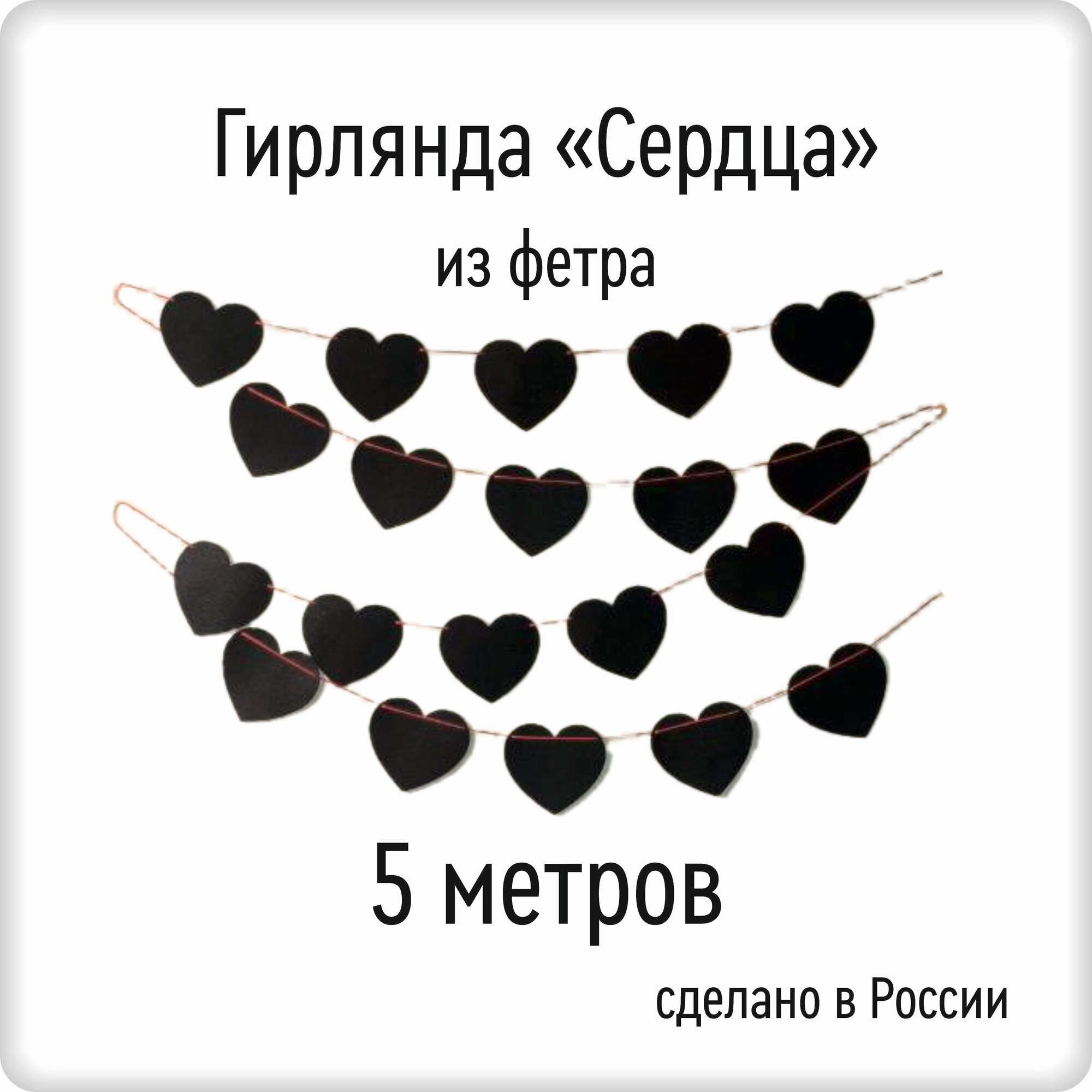 10 цен на Гирлянда из сердец, черная, 500см, сердечки 13*15см, готовая из фетра