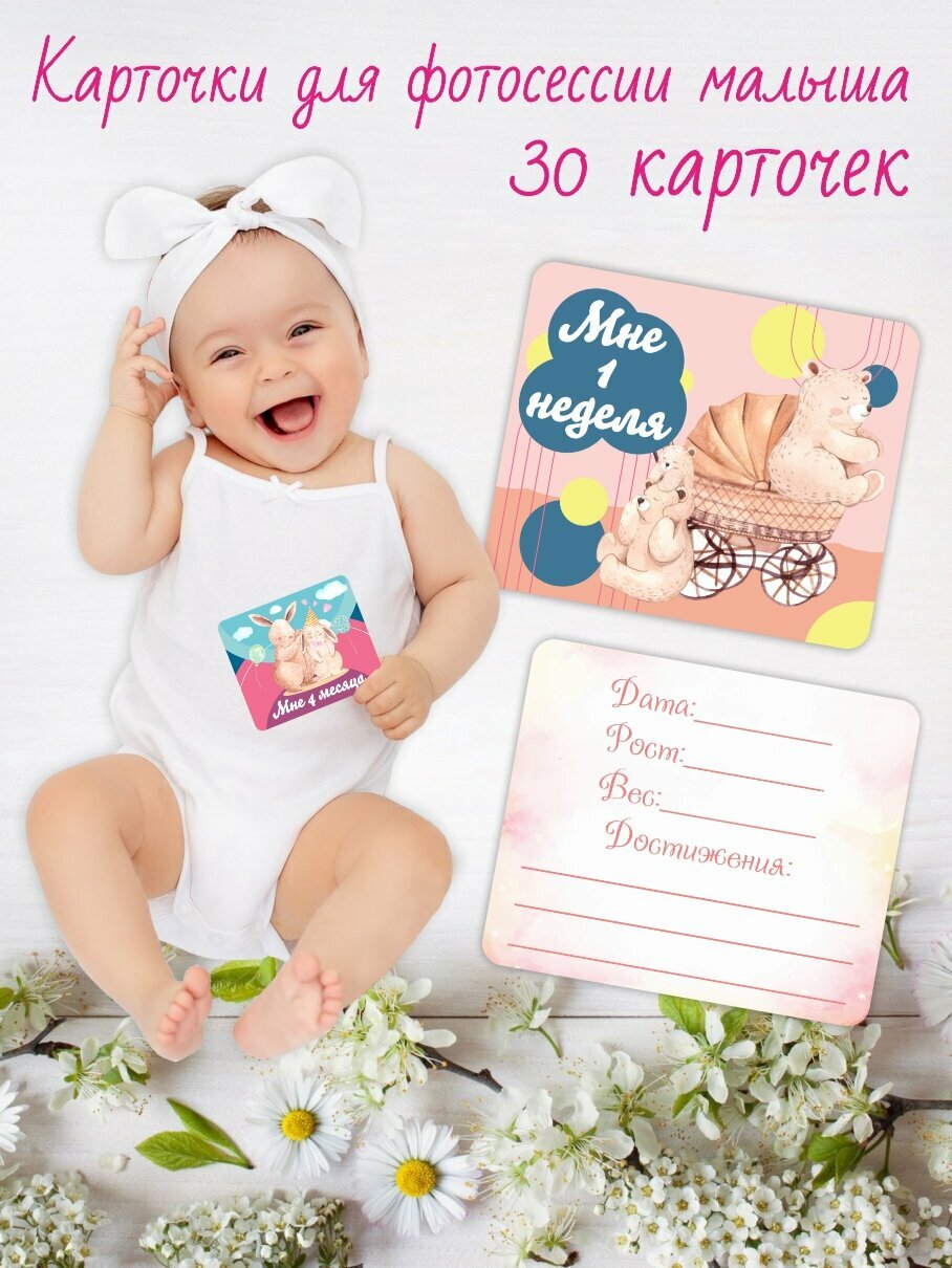 10 цен на Карточки ООО "Амарант" для фотосессии новорожденных и малыша 30шт