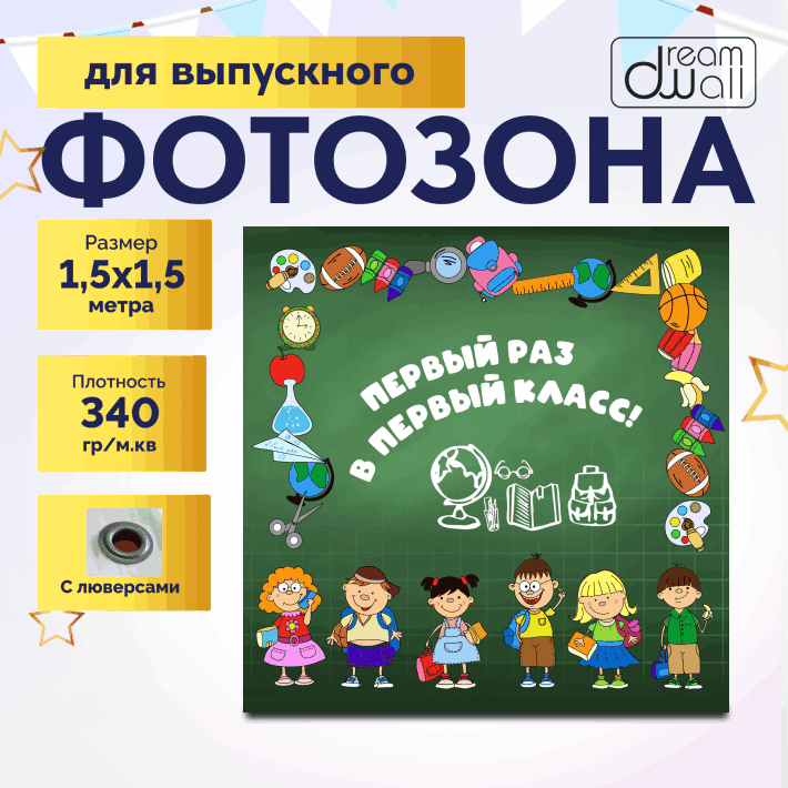 Фотозона "1 сентября" Первый раз в первый класс! фон школьная доска, 150х150 см информация: