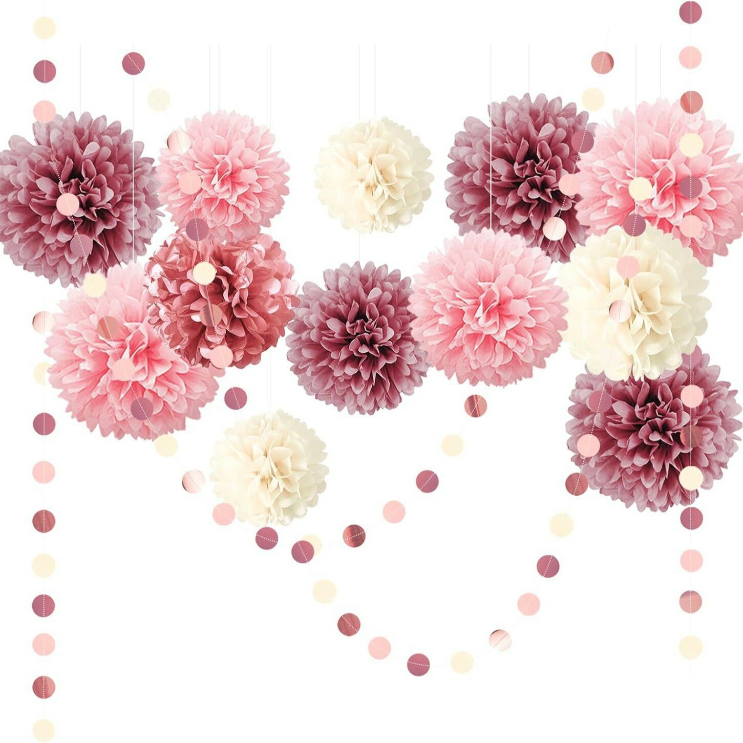 Набор помпонов с гирляндой для украшения праздника, "Брусничный микс", 15 шт. информация:
