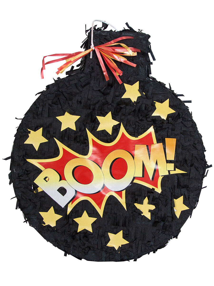 Отзывы на Пиньята МосШар Бомба, бумага/картон, черно-желто-оранжевая, 37x9x33 см