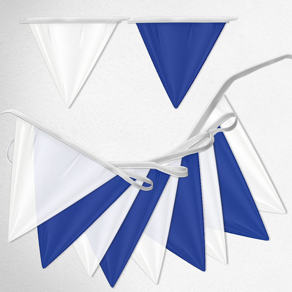 Гирлянда, морская флажная лента из белых, голубых и синих флажков треугольников / длина 10 м.