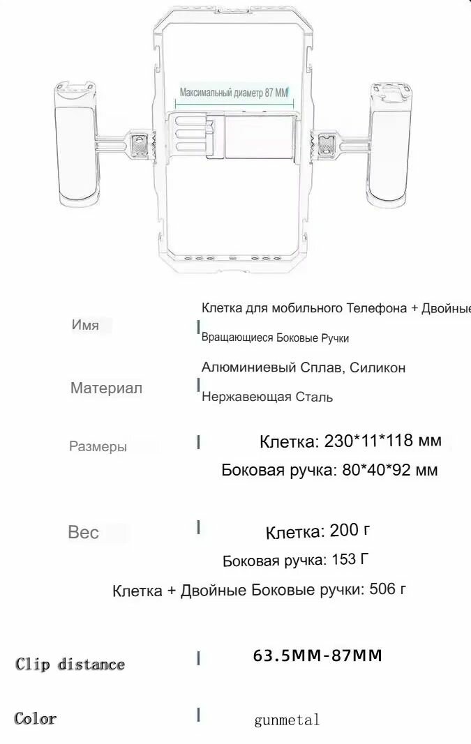 Универсальная клетка для телефона 63,5-87мм + 2 ручки, iphone/samsung/xiaomi информация: