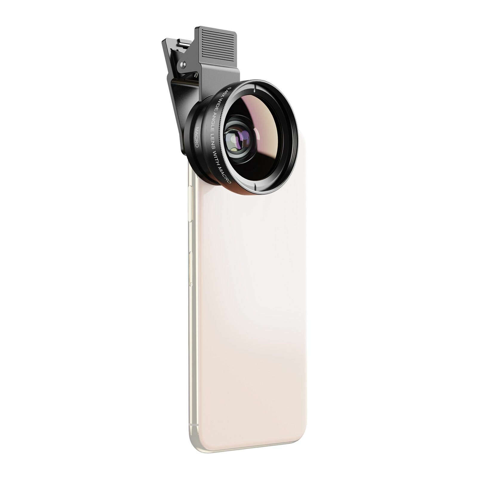 Широкоугольный макрообъектив-линза для телефона 2 в 1, 0.45Х, 37 мм, черный